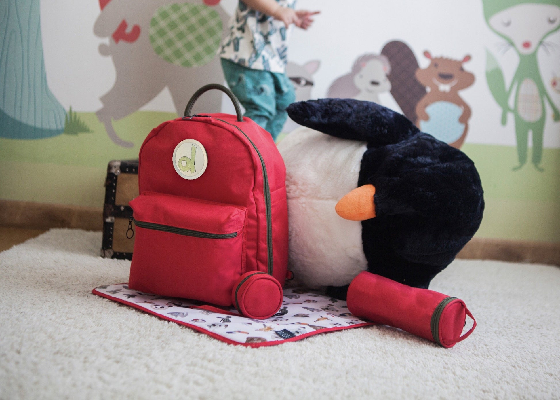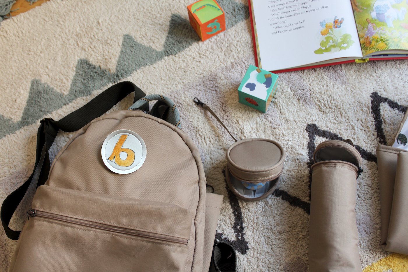 - illustration printed on white faux leather / hand-sewn grey Velcro on the back