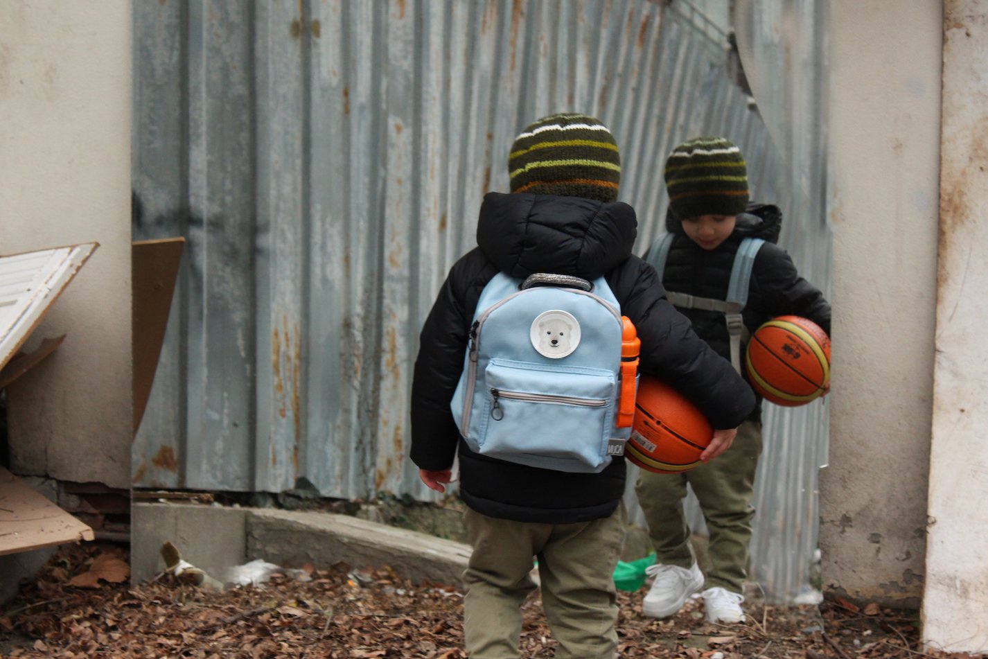 - Patented illustration printed on white faux leather / hand-sewn grey Velcro on the back